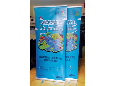 Sistem roll-up din aluminu, cu picioare din aluminiu.